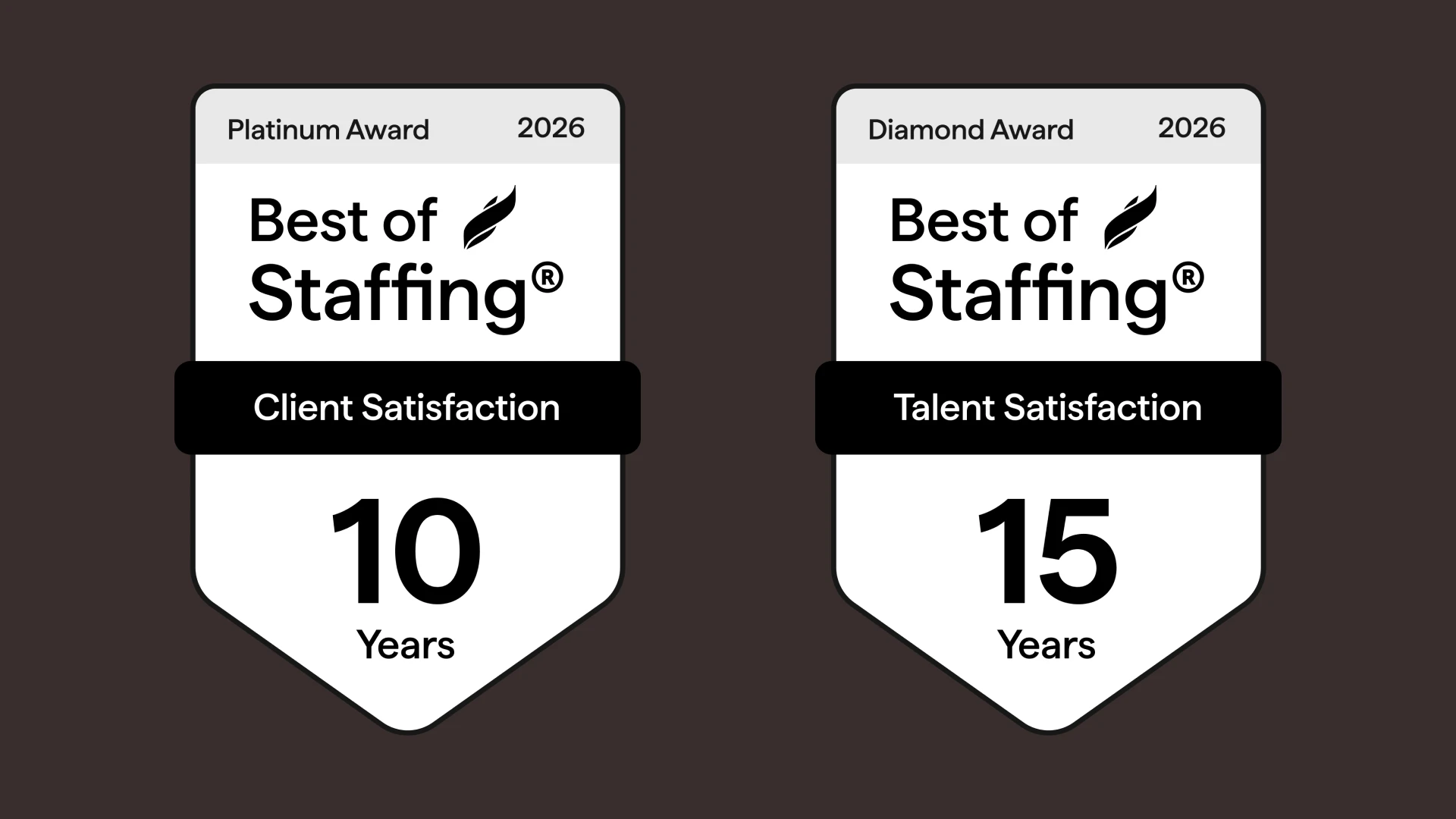 Service is at the heart of our staffing solutions, which is why we've won ClearlyRated's Best of Staffing Awards for Clients and Talent for more than a decade.